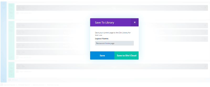 To save a layout to the cloud, select Save to Library as you normally would. Add a name to the layout and click the new button called Save to Divi Cloud. That’s it. The layout is now available in your Divi Cloud and can be accessed from any Divi installation where you’ve installed the plugin.