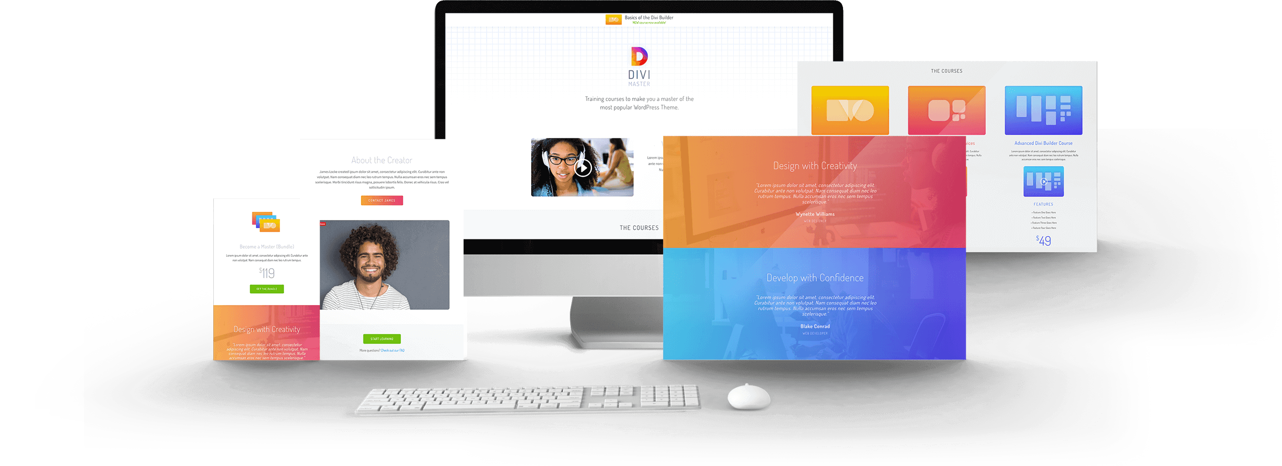 A course-themed project pack, complete with a single-page layout, Photoshop wireframe, proposal template and project timeline. DiviMaster screams excitement with various gradient backgrounds, gradient buttons, clean typography and subtle animations. Need a jump start for your next course? We’ve got your back!