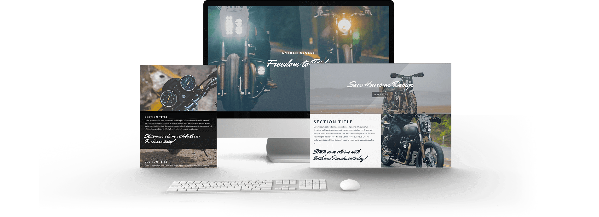 Anthem Cycles is a Layout from the best-selling Anthem Child Theme. The Layout features great typography, Ken Burns header, and a styled, light contact form. Want more? Anthem is available as a Child Theme.