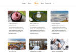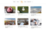 - Home – Grid – shows the posts in 4 columns grid view (small featured image, post title, meta information and excerpt). Hovering an image will show an overlay icon on a semitransparent background.